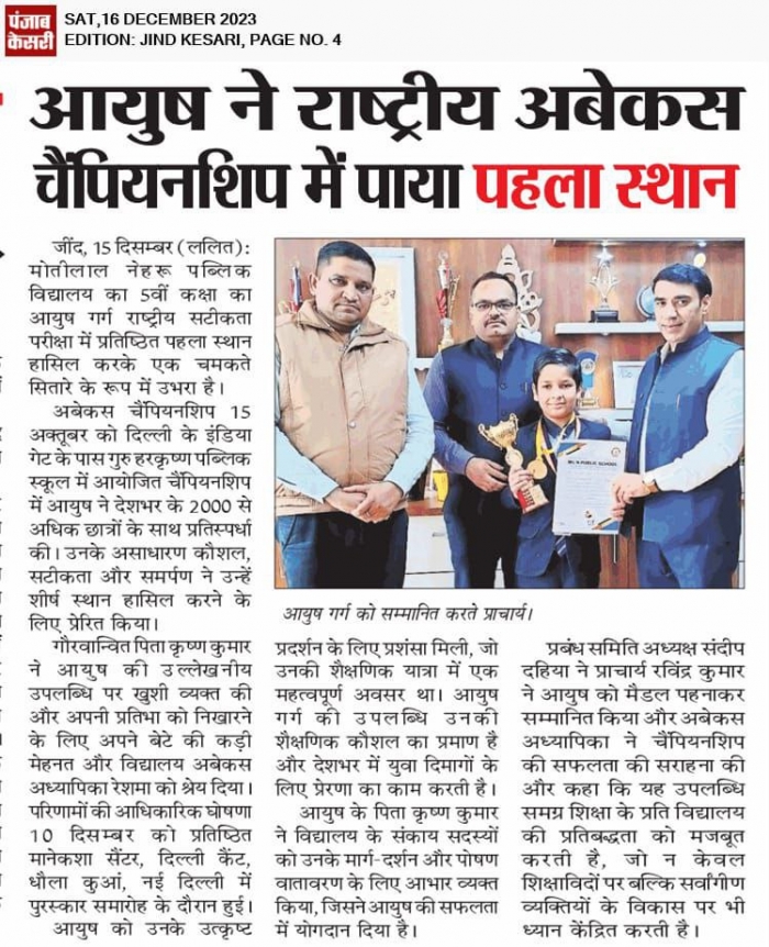 First Position in Abacus in Natiional Competation